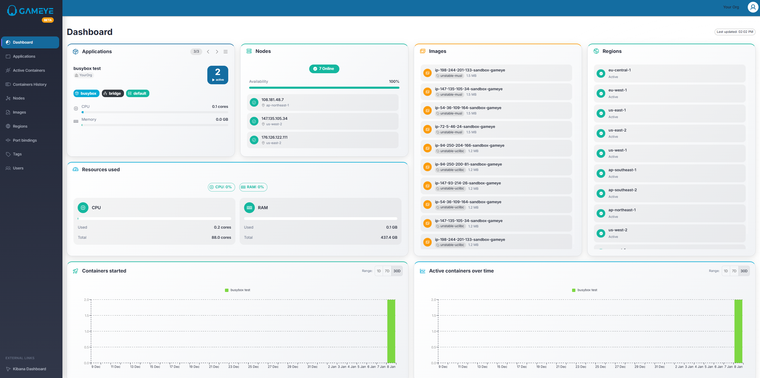 • Regions card: Regions overview.