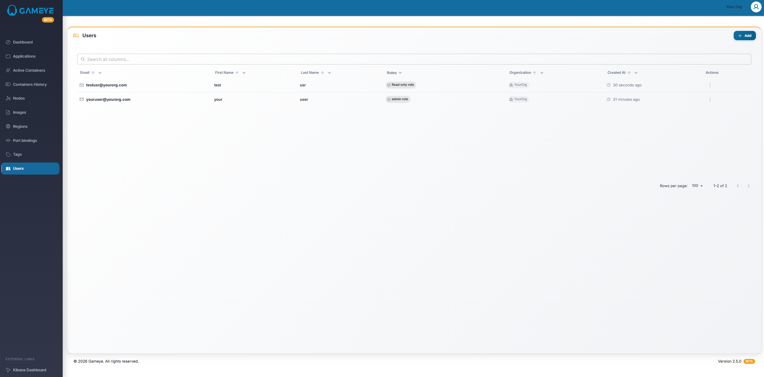 Section titled “Purpose”Users are the accounts that can sign in to Gameye Admin.